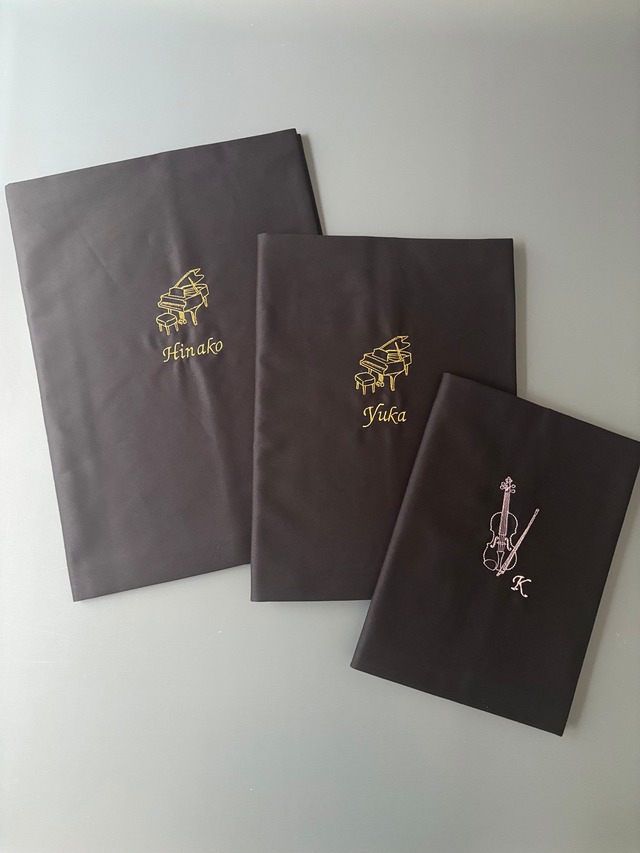 楽器モチーフのイニシャル刺繍入りスケッチブックカバー♪