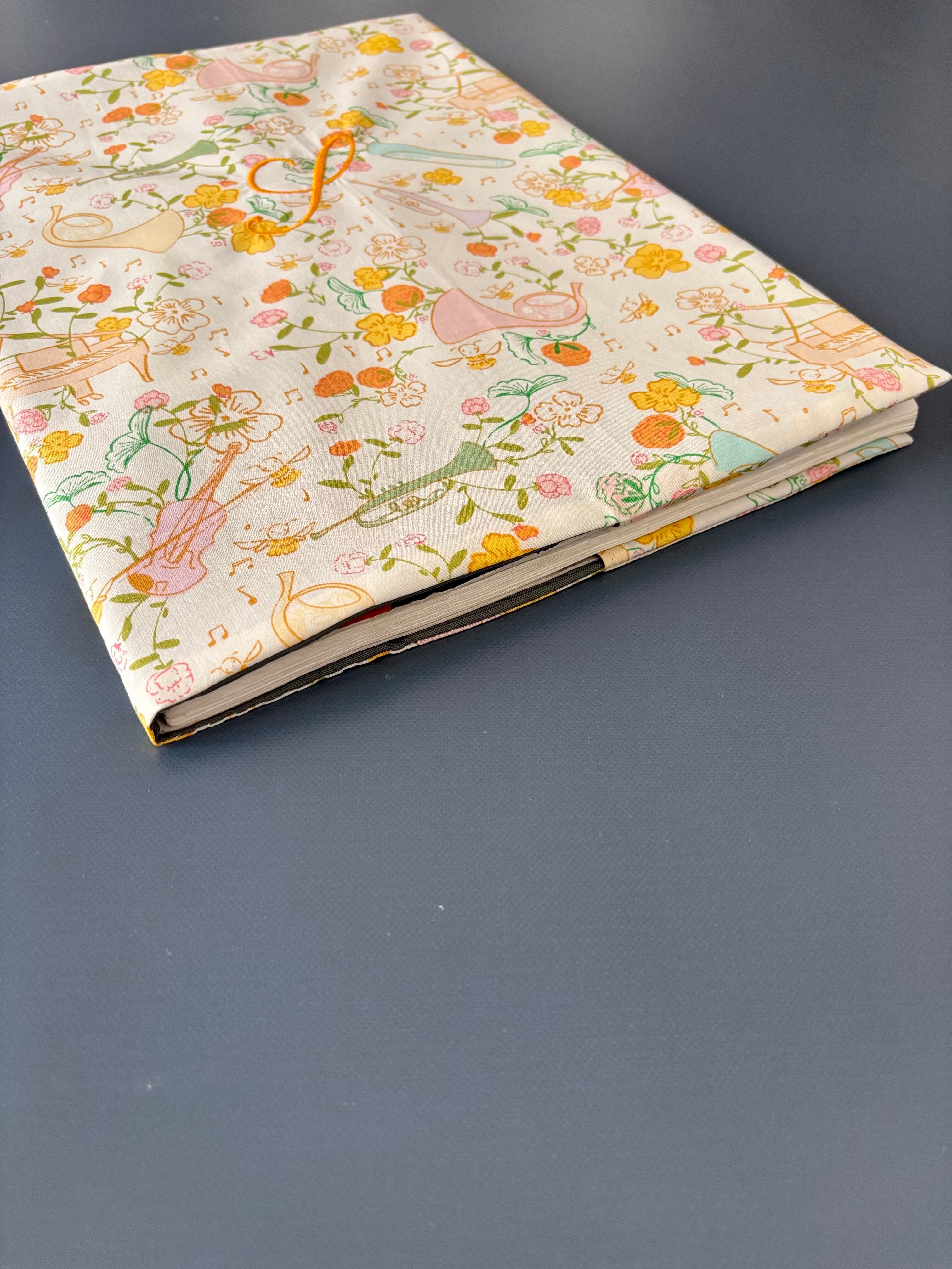 楽器モチーフのイニシャル刺繍入りスケッチブックカバー♪