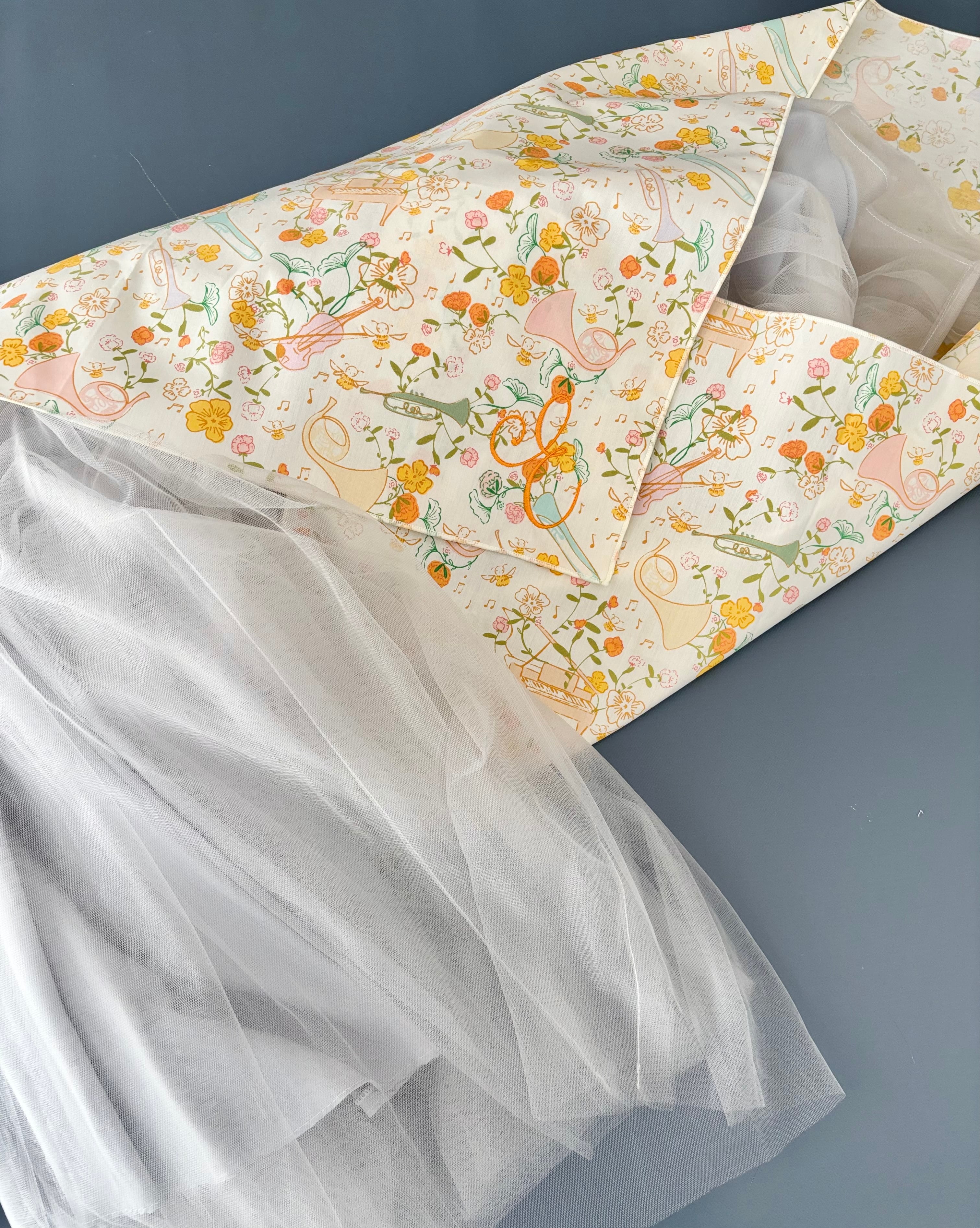 ドレスが包める♪楽器モチーフのイニシャル刺繍入り大判風呂敷